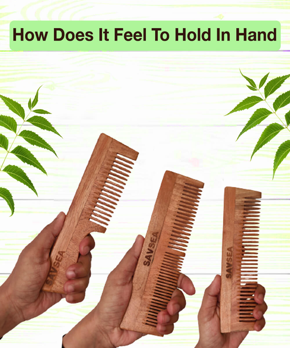 • Gentle On Hair. Neem wooden combs are carbon based, just like your hair, skin and scalp. Since both hair and wood have a negative electrical charge, a wooden comb helps your hair lay down and gives it a smooth and glossy look.